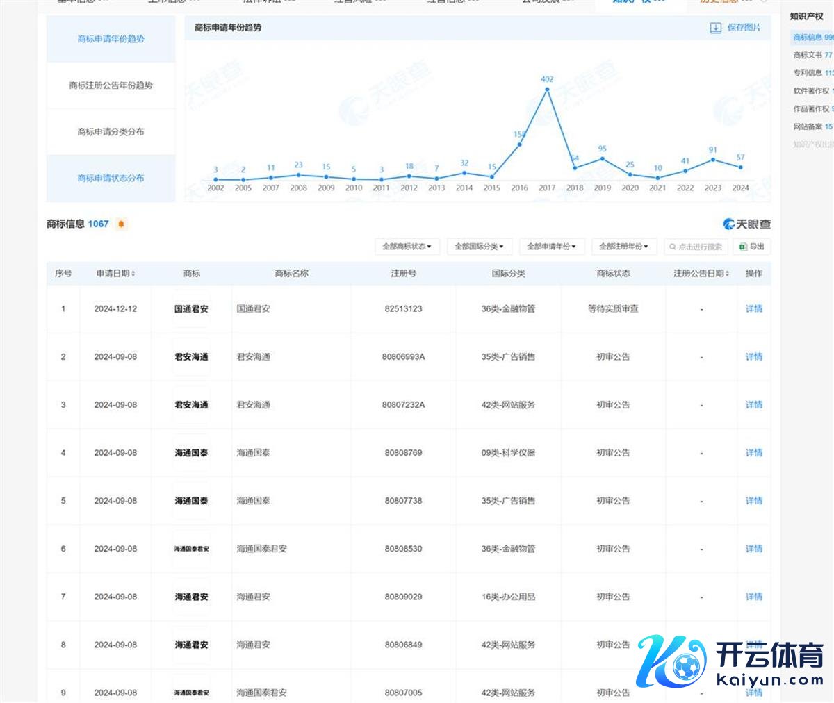 现时,国泰君安与海通证券统一后的称号尚未公布。但极目新闻记者属目到,天眼查APP线路开云·kaiyun体育,国泰君何在昔时半年内苦求了多个新的商标称号,包括国通君安、君安海通、海通国泰等。其中最新提交苦求的是“国通君安”,按照外洋分类为“36-金融物管”,于2024年12月12日提交审核,现在还在恭候本色审查。