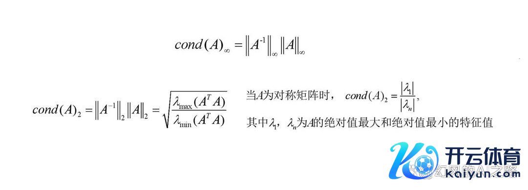 矩阵条款数的野心公式如图所示,它即是矩阵的范数乘以矩阵逆的范数。